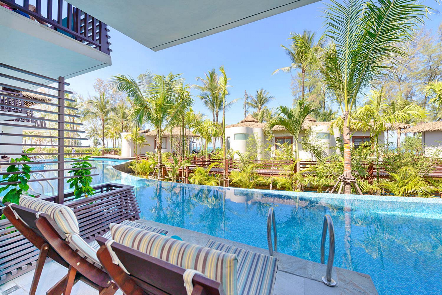 Deluxe Pool Access rooms - The best selling room type of the resort where you can access directly into the swimming pools from the private terrace, measuring of 51 sqm they feature with their own private terrace, complete with sun loungers with the view of overlooking impressive lush tropical gardens and pool view. It comes with the option of a King size bed or two single beds.
